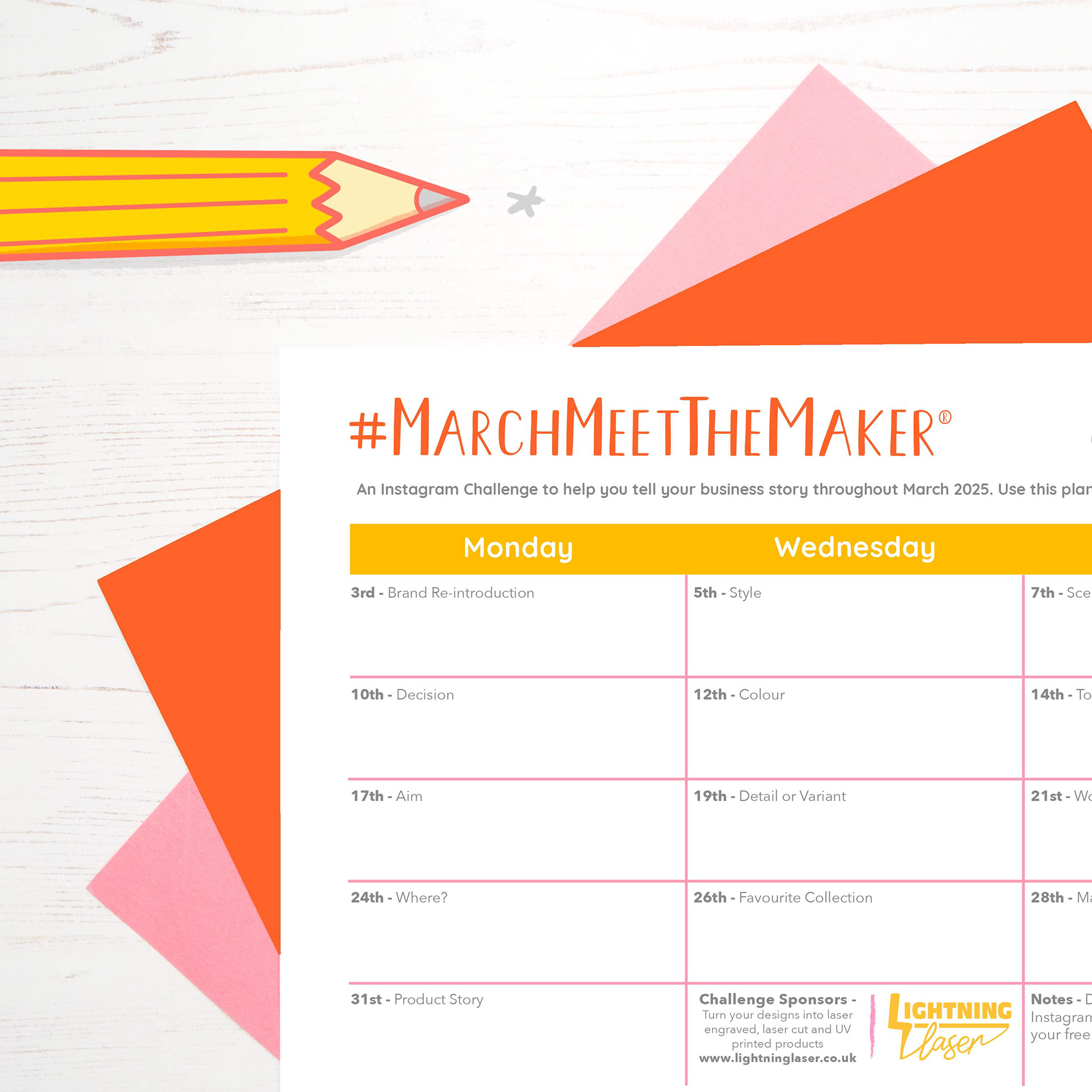 Every year, a free planner sheet is available to download for the #MarchMeetTheMaker Instagram Challenge. This is to help you plan ahead and ensure that posting isn't such an anxious rush.
